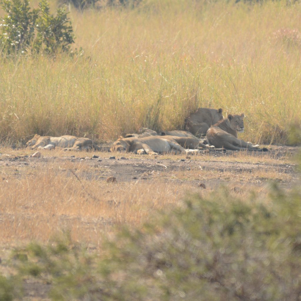 Sure enough, our first proper lion sighting of the trip: a pride of about 12 (maybe more, hard to tell through the mist) lounging in the long grass. As the sun began warming the earth, the mist lifted, and the pride slowly shuffled into the shade, disappearing one by one. Lazy cats indeed.