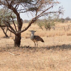 With three of the Big 5 now ticked off, our spirits lifted. The next sighting was especially meaningful for me: a Kori Bustard. During my field guide training, I’d studied this bird — one of the heaviest flying birds in the world, known for feeding on acacia gum. I’d answered exam questions about it but had never seen one in the wild. Finally spotting it was a real treat.