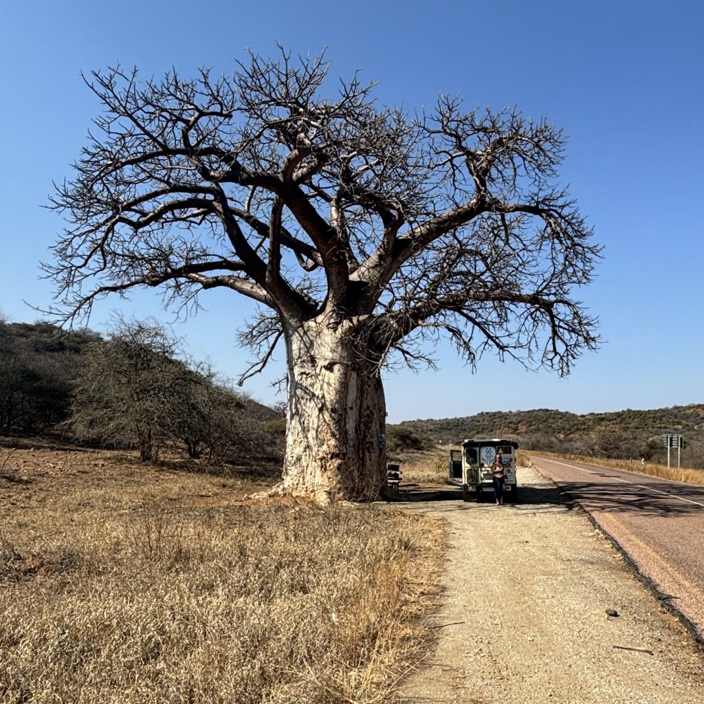 Once inside, the scenery changed dramatically from what we knew in the south. This was mopane country — endless stretches of mopane trees, sometimes tall woodlands, sometimes low scrub, their butterfly-shaped leaves glowing in the early light. Scattered between them stood the giants of the north — baobabs, ancient and imposing, each one a landmark in its own right. Along the rivers, the dusty bush gave way to lush belts of fever trees, figs, and ana trees, alive with birdsong.